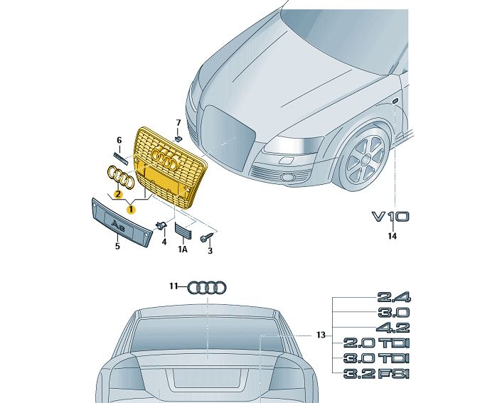Kühlergrill Frontgrill (inkl. Audi-Zeichen)