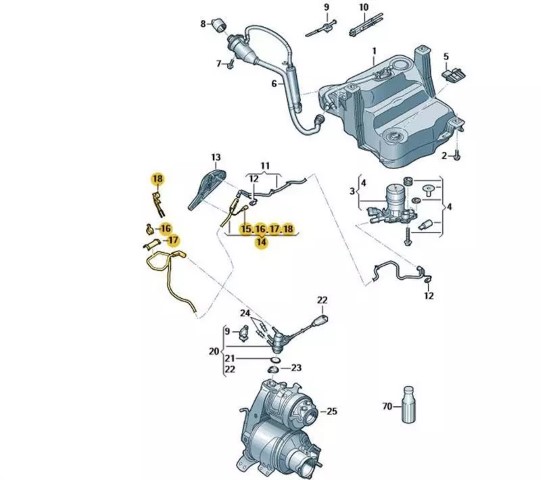 Dosierleitung zum Einspritzventil für Reduktionsmittel vorn