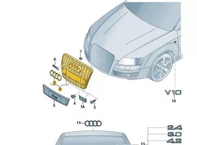Kühlergrill Frontgrill (inkl. Audi-Zeichen)