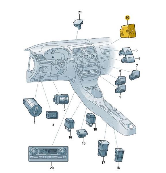 Schlüsselschalter für Deaktivierung des Beifahrer-Airbags mit Schliesszylinder