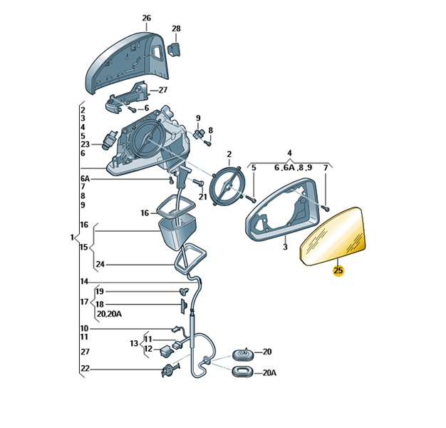 Spiegelglas (asphärisch – weitwinkel) mit Trägerplatte rechts